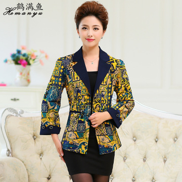 鶴滿魚(yú)2015秋裝新款中老年短外套上衣女 修身顯瘦媽媽裝小西裝薄 /