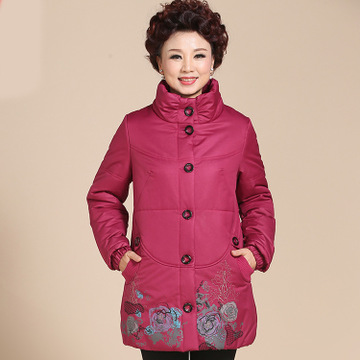 中老年女裝秋冬裝棉衣中長款媽媽裝棉衣印花立領外套40-50歲 /