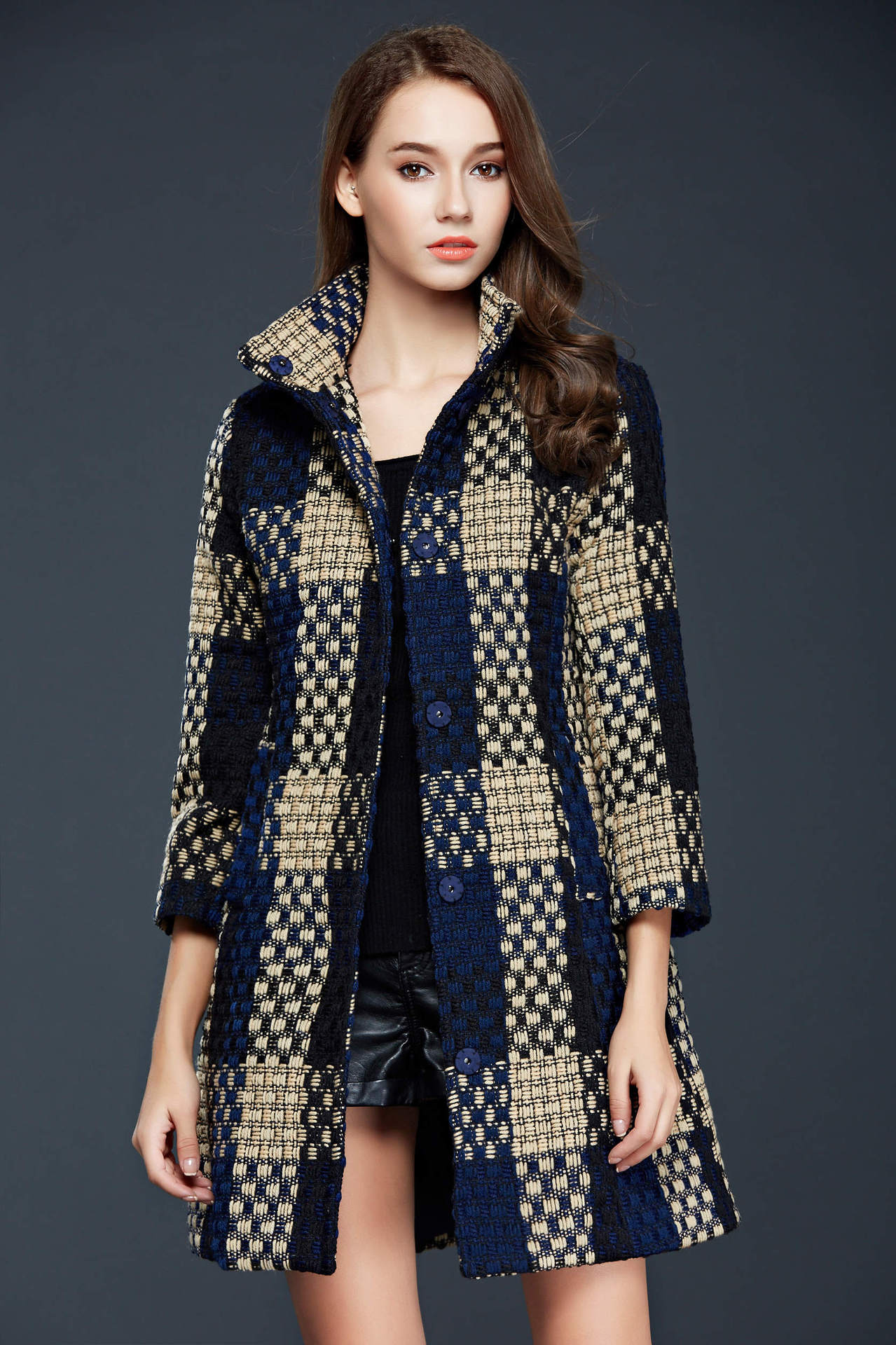 新款女裝歐美女裝大牌風(fēng)千鳥(niǎo)格風(fēng)衣 粗紡加厚冬季保暖大衣外套 /
