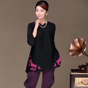 粉紅色4粒扣子連衣裙三宅真絲一生皺褶時(shí)尚春秋外套中老年女裝 /