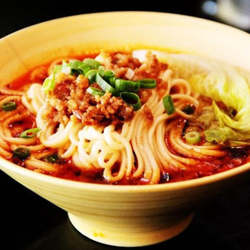擔(dān)擔(dān)面是四川省著名的漢族傳統(tǒng)面食小吃,據(jù)說源于挑夫們在碼頭挑著擔(dān)擔(dān)賣面,因而得名。用面粉搟制成面條,煮熟,舀上炒制的肉末而成。成菜面條細(xì)薄,鹵汁酥香,咸鮮微辣,香氣撲鼻,十分入味。擔(dān)擔(dān)面是川菜中代表性食物,為人們品嘗川菜時的必備佳肴。
