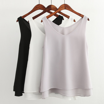 韓版V領雙層雪紡衫背心女夏外穿小吊帶大碼顯瘦休閑百搭 /