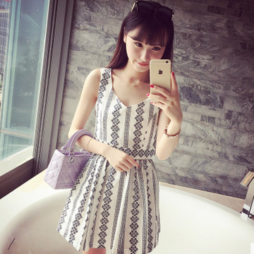 2016春裝韓版女裝翻領帶腰帶條紋襯衫連衣裙 /
