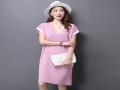 大款春夏裝女士寬松復(fù)古文藝針織短袖連衣裙女 /