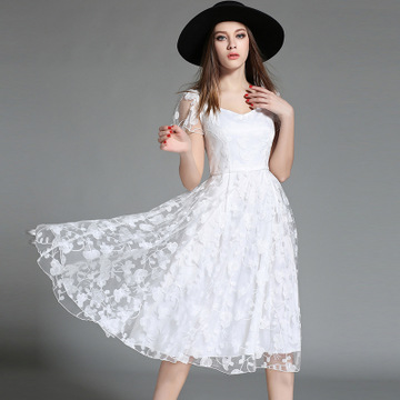 【實拍】春夏新款繡花網(wǎng)紗刺繡中長款連衣裙 /