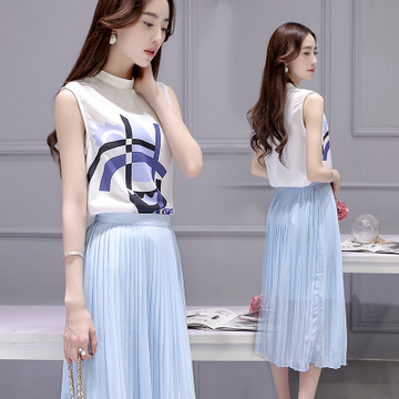 2016夏裝新款韓版女無袖中長裙純色兩件套打底衫 /