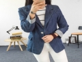 2016春秋新牛仔西裝女一粒扣顯瘦長袖水洗時(shí)尚小西裝外套一件代發(fā) /