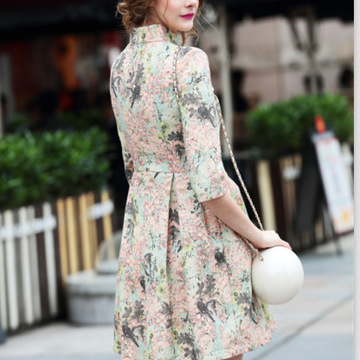 春裝新款女裝2016復(fù)古印花長袖旗袍連衣裙修身韓版春秋季 A字裙 /