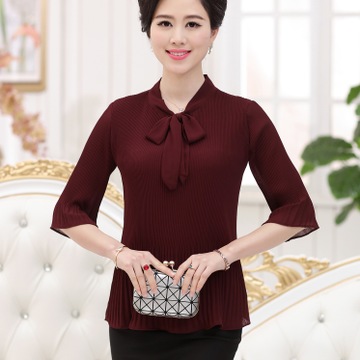 2016夏季新款媽媽裝雪紡衫七分袖 寬松氣質(zhì)純色中老年女裝夏 /