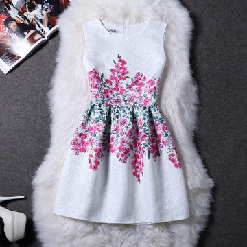 2016春夏時(shí)尚印花修身連衣裙禮服無袖背心打底a字蓬蓬裙潮公主裙 /