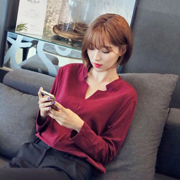 2016春夏季女裝韓版打底衫小V領(lǐng)中長款寬松上衣純棉長袖T恤衫批發(fā) /
