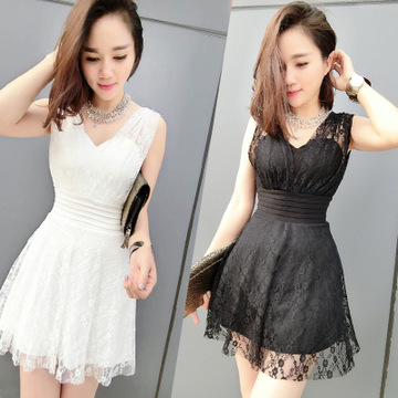 2016時(shí)尚新款夜店韓版性感修身深V領(lǐng)低胸氣質(zhì)露背顯瘦蕾絲連衣裙 /