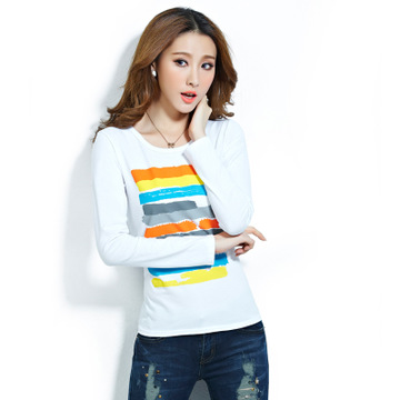 一件代發(fā)春上新韓版女裝打底印花純棉上衣修身顯瘦女學(xué)生長袖t恤 /