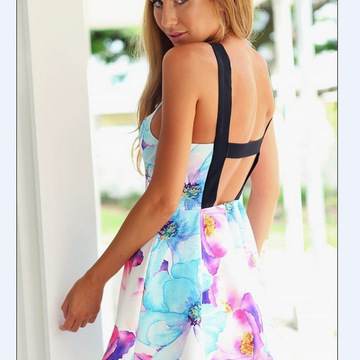 歐美爆款2016夏季女裝印花V領(lǐng)掛脖性感連衣裙外貿(mào)女裝貨源原單 /