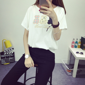 韓版夏季卡通繡花寬松短袖女學院風簡約學生2016年新款T恤 /