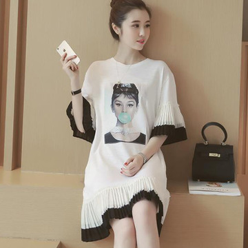 2016夏季新款韓版時尚夢露貼布百褶荷葉邊孕婦連衣裙 /