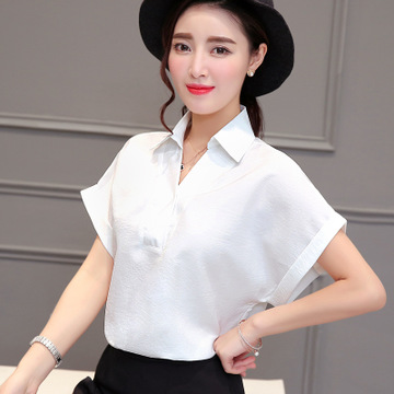 2016 韓版夏季休閑短袖襯衫 百搭女裝V領(lǐng)寬松襯衫女 /