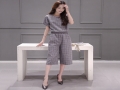 2016夏季時(shí)尚闊腿褲套裝韓版顯瘦新款女裝格子上衣七分褲兩件套 /