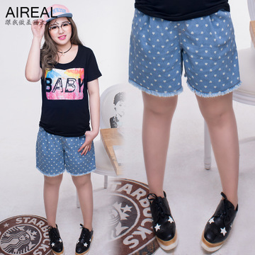 2016夏新款韓版大碼女裝加肥加大顯瘦藍(lán)色牛仔短褲200斤胖mm可穿 /