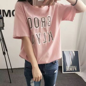 青島女裝貨源 韓國東大門字母印花純棉短袖t恤打底衫上衣女16DC07 /