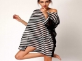 夏季寬松雪紡黑白條紋沙灘裙泳裝外罩衫比基尼沙灘外套 /
