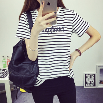 一件代發(fā)女裝2016韓版夏裝新款條紋T恤短袖寬松打底衫批發(fā)網(wǎng)貨源 /