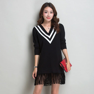 2016春季新款女款上衣時(shí)尚中長(zhǎng)款寬松針織衫 /