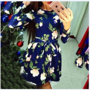 2016夏歐美新款女裝長(zhǎng)袖印花性感連衣裙 wish速賣通外貿(mào)爆款原單 /