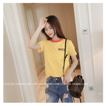 2016夏裝新款韓范時尚百搭韓版寬松圓領(lǐng)字母印花短袖T恤一件代發(fā) /