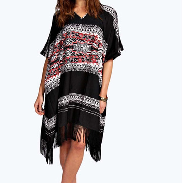 速賣通ebay Wiah歐美新時尚女裝 定位印花下擺流蘇寬松連衣裙現(xiàn)貨 /