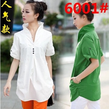 2016夏裝新款民族風(fēng)休閑大碼女百搭中長(zhǎng)款白色上衣短袖女襯衫 /
