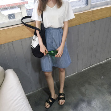 實(shí)拍 2016夏裝新款豎條紋牛仔半身裙 /