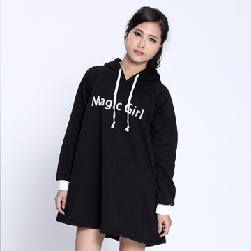 廠家直銷秋冬新款魔法陣印花中長款加絨連帽衛(wèi)衣日系女士衛(wèi)衣外套 /