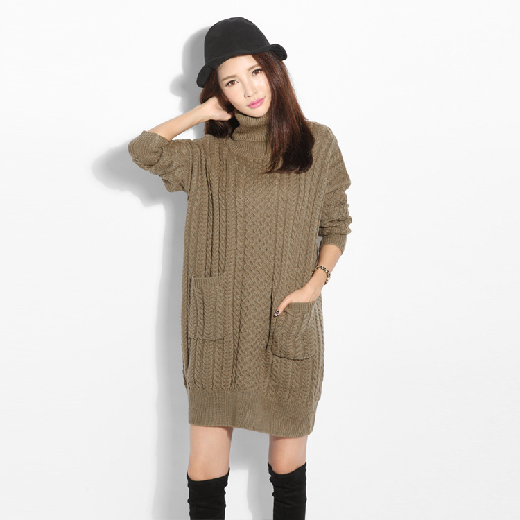 秋裝針織衫女式長袖套頭韓版粗針高領毛衣女裝新款冬季純色打底裙 /