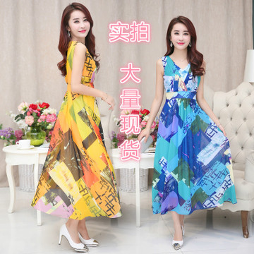 實(shí)拍公主2016夏國度女裝新V領(lǐng)短袖大擺桑蠶絲長裙真絲連衣裙 /
