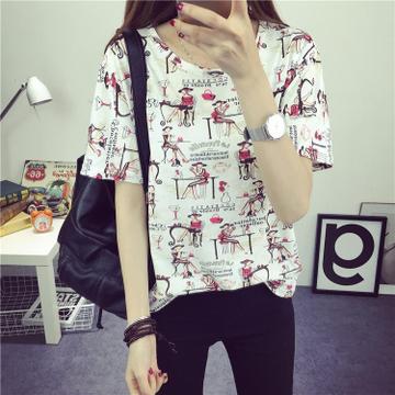 2016夏季新款韓版卡通女人印花寬松短袖T恤 女 實拍 /