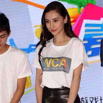 2016夏季新款A(yù)ngelababy楊穎明星同款韓版寬松白色T恤圓領(lǐng)打底衫 /