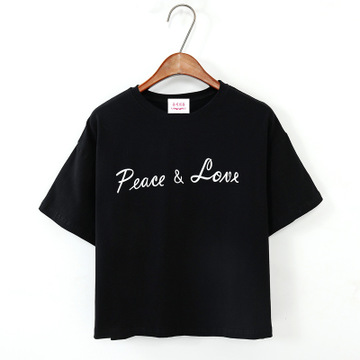 017#韓版薄棉字母印花休閑寬松短款短袖T恤歐美風(fēng)半袖女裝 潮 /