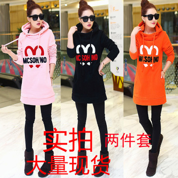 現(xiàn)貨折扣 冬季新款加厚繡花中長(zhǎng)上衣打底褲兩件套衛(wèi)衣休閑套裝 /