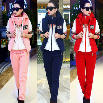 冬季新款韓版拼色印花加厚衛(wèi)衣三件套休閑套裝 實(shí)拍現(xiàn)貨 /