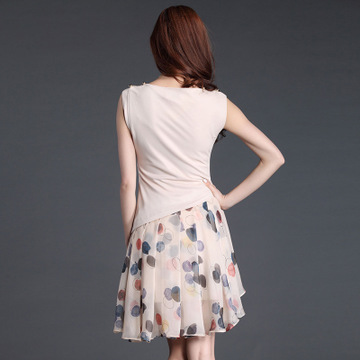 2016夏季新款 歐美女裝 仿真絲假兩件雪紡碎花百褶連衣裙 /