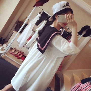 H春夏裝新款韓版簡約學(xué)院風小披肩設(shè)計打底衫上衣連衣裙 /