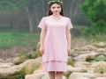 實(shí)拍 2016夏季新款純色棉麻修身立領(lǐng)大碼女裝短袖中長(zhǎng)連衣裙 /