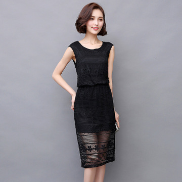 印象都市蕾絲連衣裙女2016夏季新款韓版中長款修身顯瘦無袖時尚裙 /
