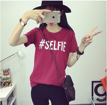 2016時尚實拍韓版修身字母印花T恤女短袖夏季百搭圓領(lǐng)打底女t恤衫 /