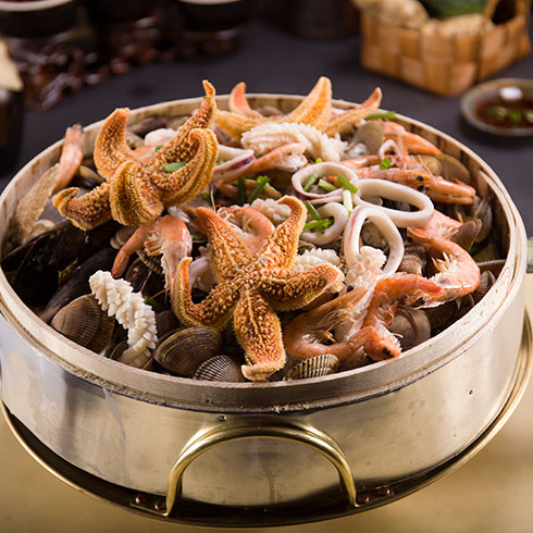 圖片上展示的是翅宴五味鍋的另一款創(chuàng)意融合菜。扇貝、魷魚(yú)、鮮蝦、海星等海鮮大雜燴可以放在火鍋里涮。海鮮有利于降血脂,適合中老年人和肥胖人群食用。科學(xué)家發(fā)現(xiàn),愛(ài)斯基摩人較少患心血管疾病,這與他們的主要食物來(lái)自深海魚(yú)類(lèi)有關(guān)。這些魚(yú)類(lèi)含有豐富的多價(jià)不飽和脂肪酸,可以降低甘油三酯和低密度脂蛋白膽固醇,減少心血管疾病。翅宴五味鍋總部是一家集食品研究、技術(shù)開(kāi)發(fā)、餐飲連鎖加盟、餐飲咨詢(xún)與策劃服務(wù)為一體的綜合性餐飲發(fā)展企業(yè),有專(zhuān)家團(tuán)隊(duì)隨時(shí)為項(xiàng)目出謀劃策。