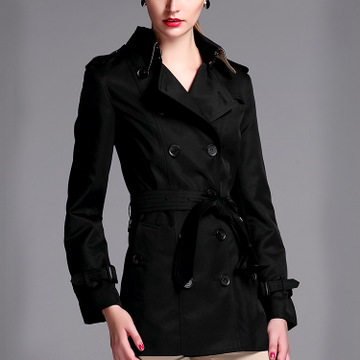 秋冬新品英倫風(fēng)高端女裝風(fēng)衣雙排扣高貴黑色 /