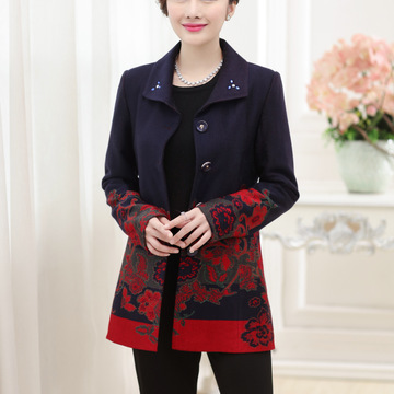 新款秋裝女士中老年時尚經(jīng)典印花圖案衣領鑲鉆媽媽裝 /