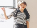 模特實拍 夏裝新款韓版寬松條紋破洞T恤上衣 /