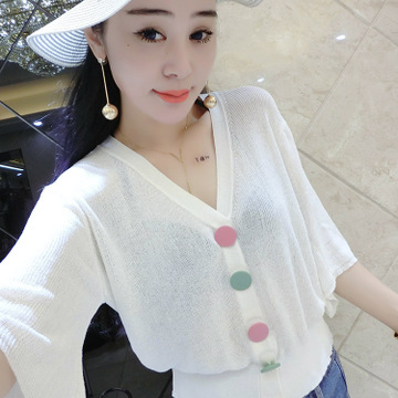 歐洲站春夏最新曲珠料喇叭袖休閑個(gè)性針織衫潮女 /